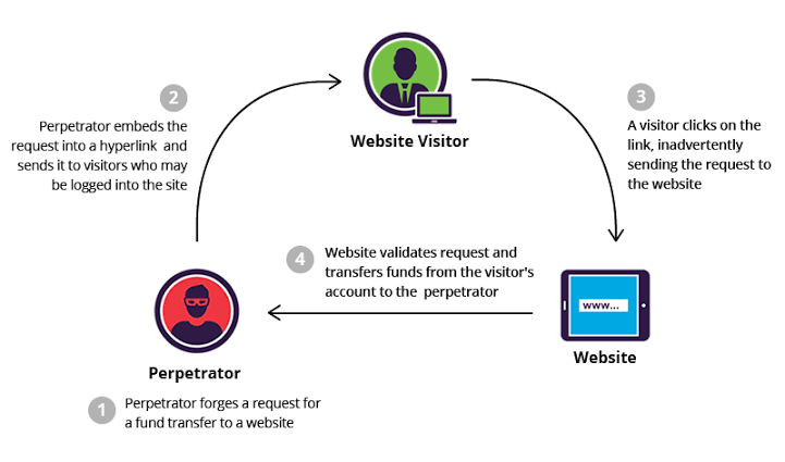CSRF's are typically conducted using malicious social engineering, such as an email or link that tricks the victim into sending a forged request to a server. As the unsuspecting user is authenticated by their application at the time of the attack, it’s impossible to distinguish a legitimate request from a forged one.